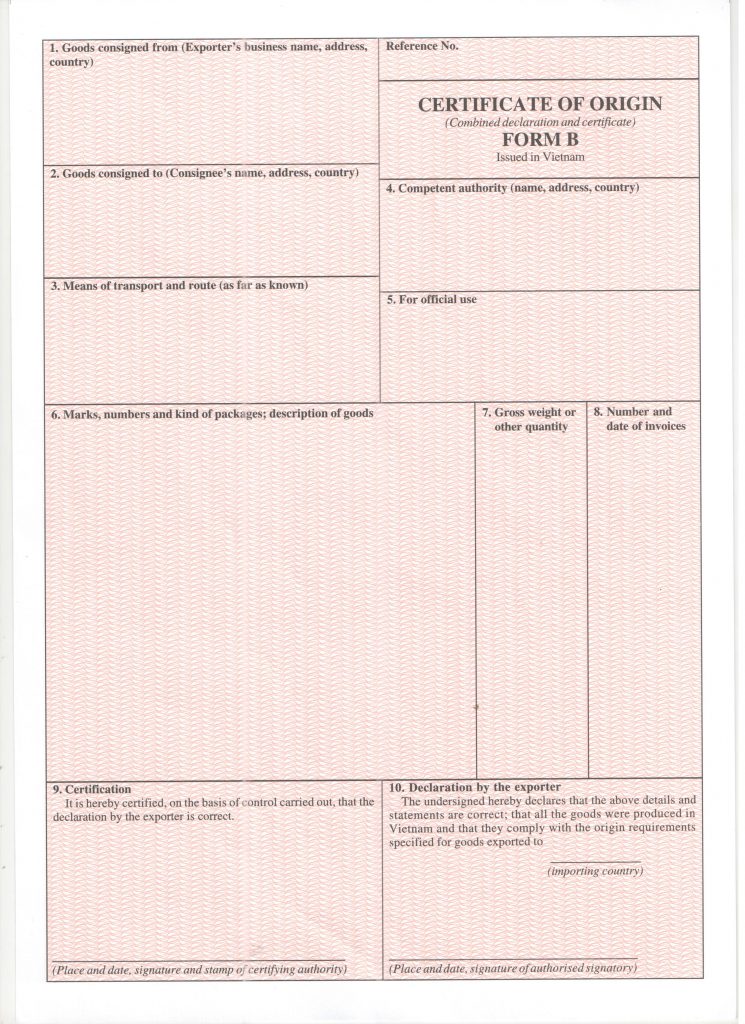 Hướng dẫn cách khai C/O form B Ô 1: kê khai tên, địa chỉ, nước (Vietnam) của người xuất khẩu Việt Nam.Ô 2: kê khai tên, địa chỉ, nước của người nhận hàng. Trường hợp nhận hàng theo chỉ định sẽ được khai báo là TO ORDER hoặc TO ORDER OF <người ra chỉ định>, […]